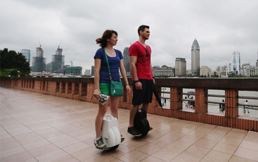 뭇 사람들의 시선을 한 몸에 받으며 즐기는 신기한 차세대 에코 레포츠,